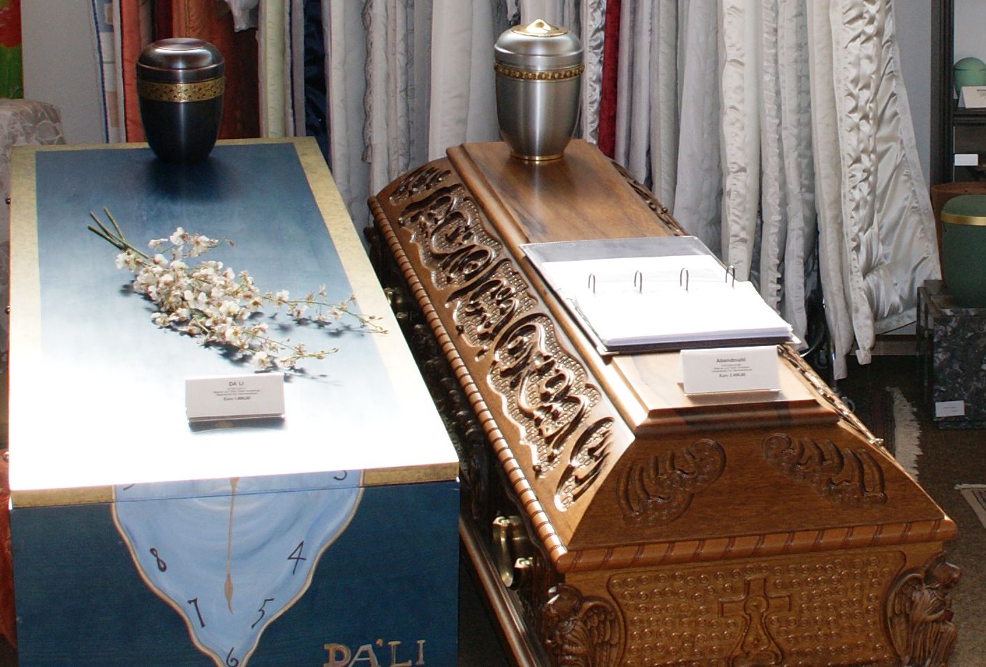 Trauerdrucksachen erstellen wir professionell im Haus. Dabei können Sie aus Gestaltungsvorlagen wählen und auch eigene Ideen, Bilder und Zitate einbringen. So werden Anzeigen oder Danksagungen für die Trauergemeinschaft zu wertvollen Erinnerungsstücken. Als engste Angehörige wünschen Sie sich vielleicht weitere Andenken: Video-Aufnahmen von der Trauerfeier, Mini-Urnen oder Gedenkkristalle – gerne zeigen wir Ihnen verschiedene Möglichkeiten.