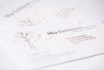 Beim Trauerdruck sollte alles fehlerfrei und sorgfältig abgestimmt sein. Das geht im Kunden-Center besonders leicht! Hier sehen Sie die Trauerdrucksachen, die wir individuell für Sie entwerfen, mit allen wichtigen Angaben auf einen Klick.